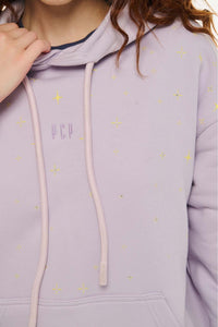 • UNISEX HOODIE WITH EMBROIDERY AND TRANSFER PRINT - THE CRYSTAL- LILAC