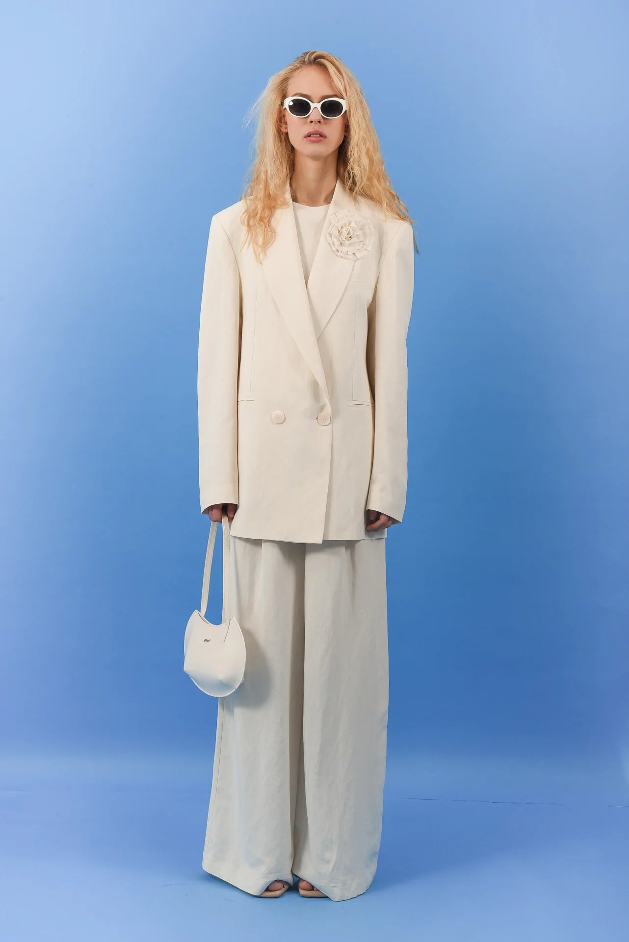 June Pants feature a fluid wide-leg silhouette designed for effortless elegance and comfort. Crafted from lightweight fabric, they sit high on the waist with soft front pleats that create movement and a flattering drape. Clean lines and a relaxed fit make them easy to style, perfect for pairing with the June Blazer & Top or refined everyday looks.