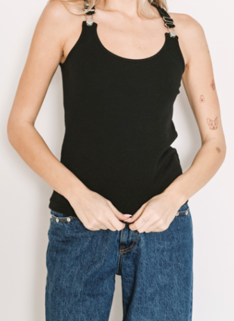 Basic ribbed top with a modern approach, crafted from cotton with added elastane for a soft feel and a comfortable, body-hugging fit. The straps feature subtle metal details that add a minimal yet distinctive touch.