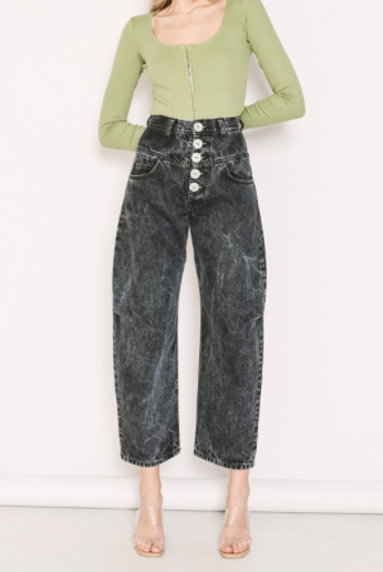 Mary reintroduces the classic high-waisted denim through a modern balloon silhouette with a subtle statement attitude.