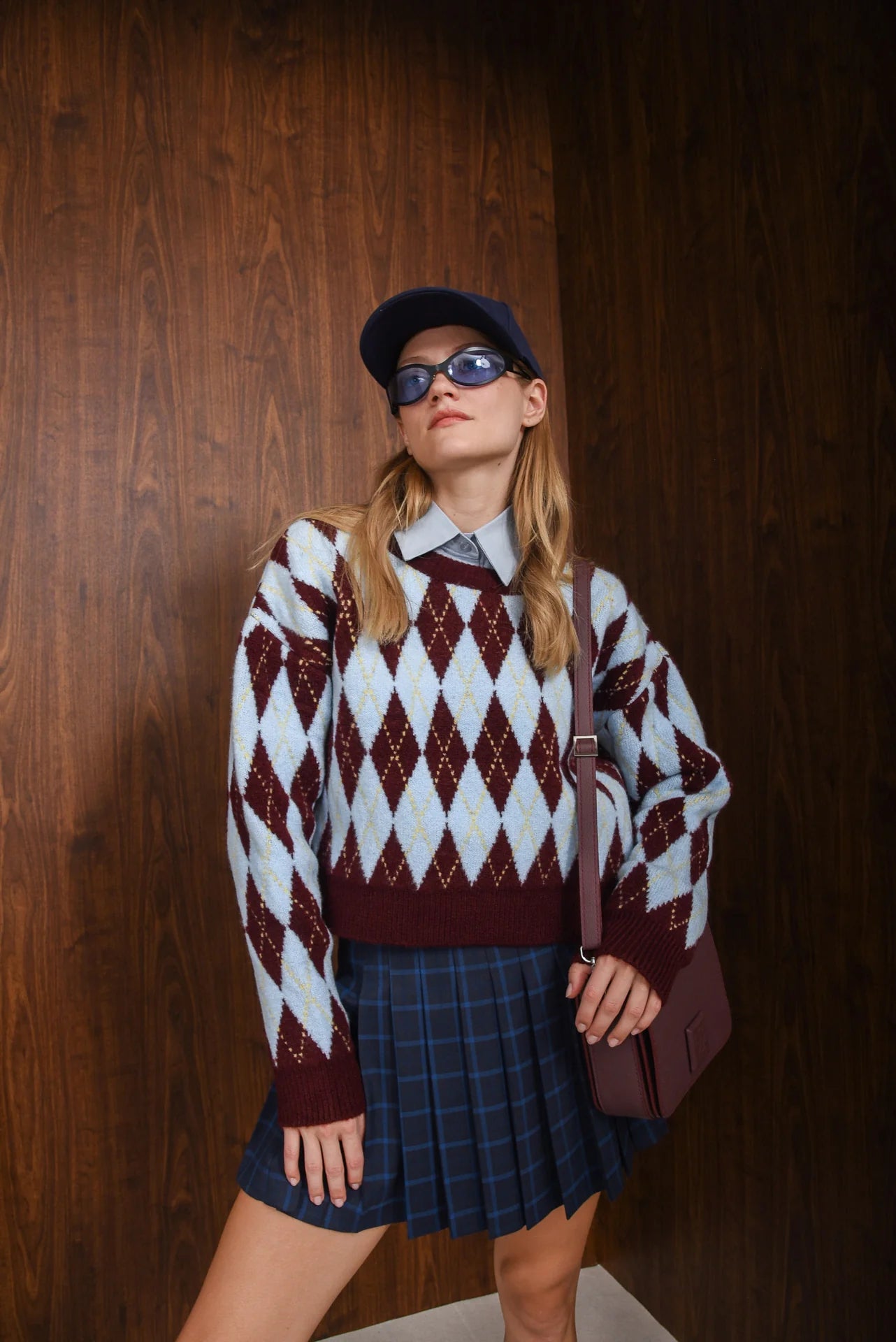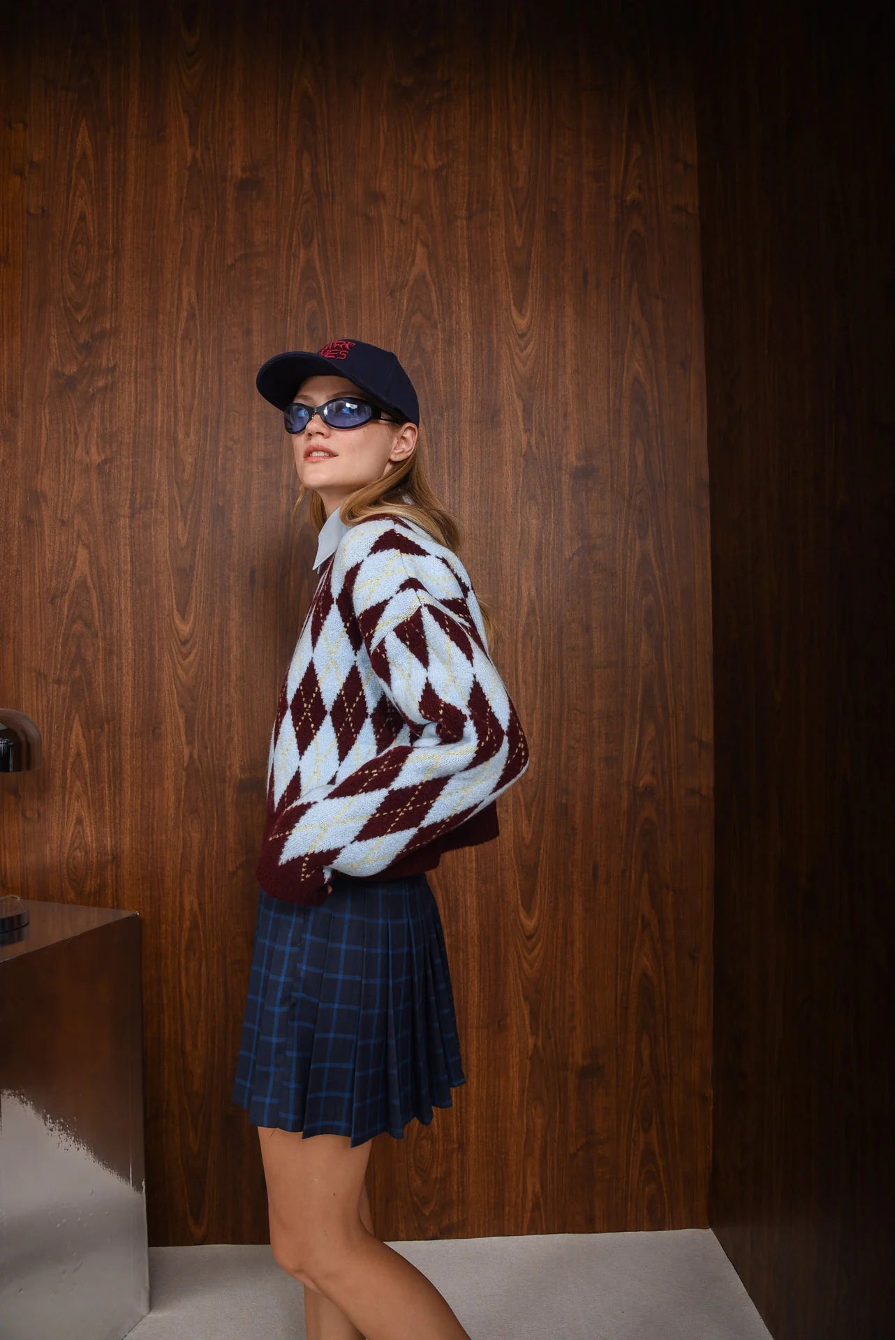 The Affect Mini Skirt features a classic pleated silhouette with a high waist and short length. Designed in a plaid pattern, it comes in deep navy tones with subtle contrasting lines. Finished with a structured waistband and side zip closure, it offers a clean, tailored look with a playful, modern feel.