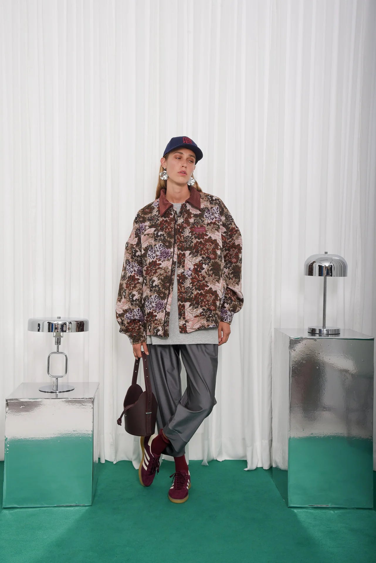 The Own Jacket is a relaxed, slightly oversized floral jacquard piece with a vintage-inspired touch. It features a zip-up front, wide sleeves, a contrast corduroy collar, and side pockets for comfort. Fully lined for structure and warmth, it brings a bold yet effortless charm to any everyday look.